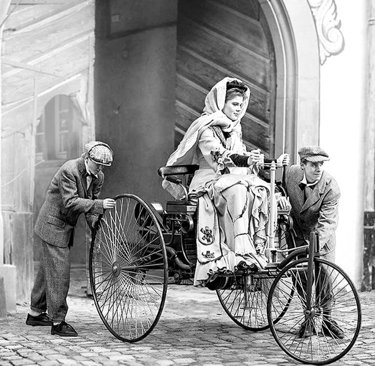 Bertha Benz, esposa de Karl Benz, fue fundamental en la historia del automóvil. En 1888, sin autorización de su marido ni de las autoridades, cogió el coche y se emprendió con dos de sus hijos un trayecto de 106 km, realizó el primer viaje de larga distancia con un automóvil utilizando motor de combustión interna, demostrando su viabilidad y ayudando a promover la invención de su marido. Bertha decidió demostrarle al mundo que se trataba de un invento revolucionario.
