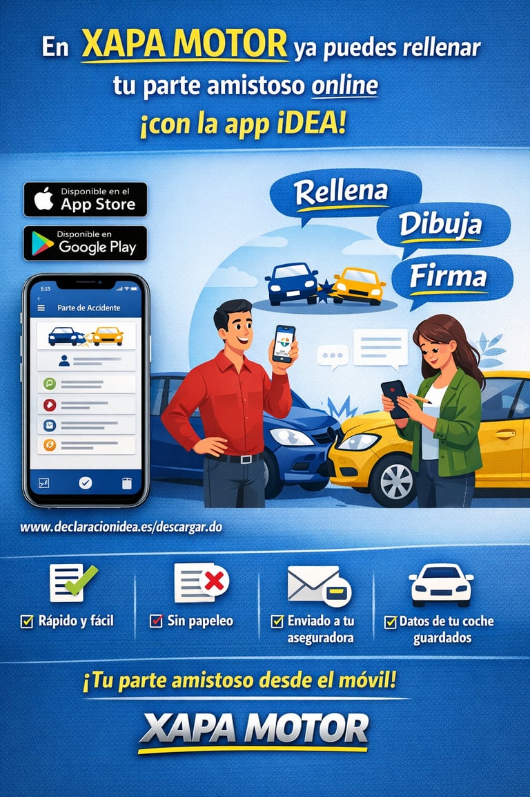 En XAPA MOTOR queremos ponértelo cada vez más fácil. Por eso, te informamos de que ya puedes cumplimentar el parte amistoso de accidente de forma digital, sin necesidad de papel, gracias a la aplicación oficial iDEA.