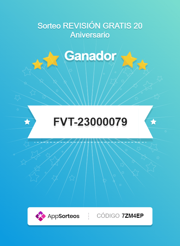 Para celebrar nuestro 20 aniversario hemos preparado un sorteo para todos nuestros clientes. Se trata de una revisión que incluye 4 Litros de aceite de motor 10W40 o 5W30 según modelos de vehículo + Filtro de aceite + mano de obra de sustituir filtro de aceite y aceite + una revisión visual de los 25 puntos más importantes del vehículo.