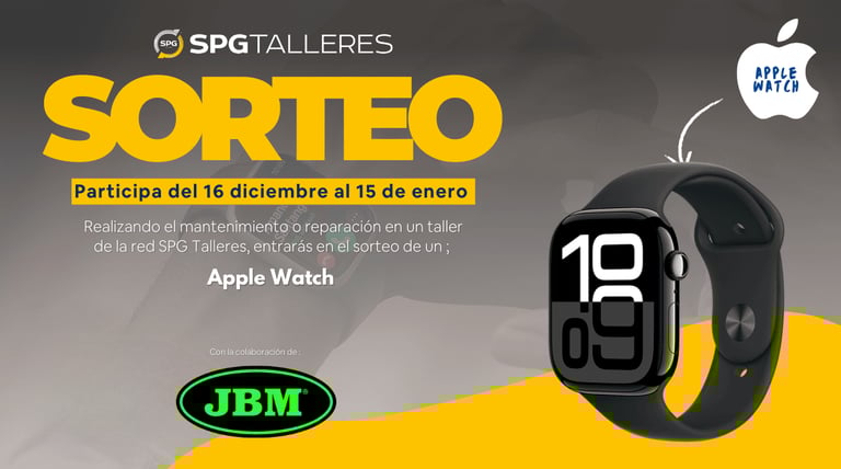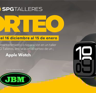 Al realizar el mantenimiento o reparación de tu vehículo en cualquier taller de la red SPG, podrás participar en el sorteo de un APPLE WATCH gracias a nuestro proveedor JBM!
